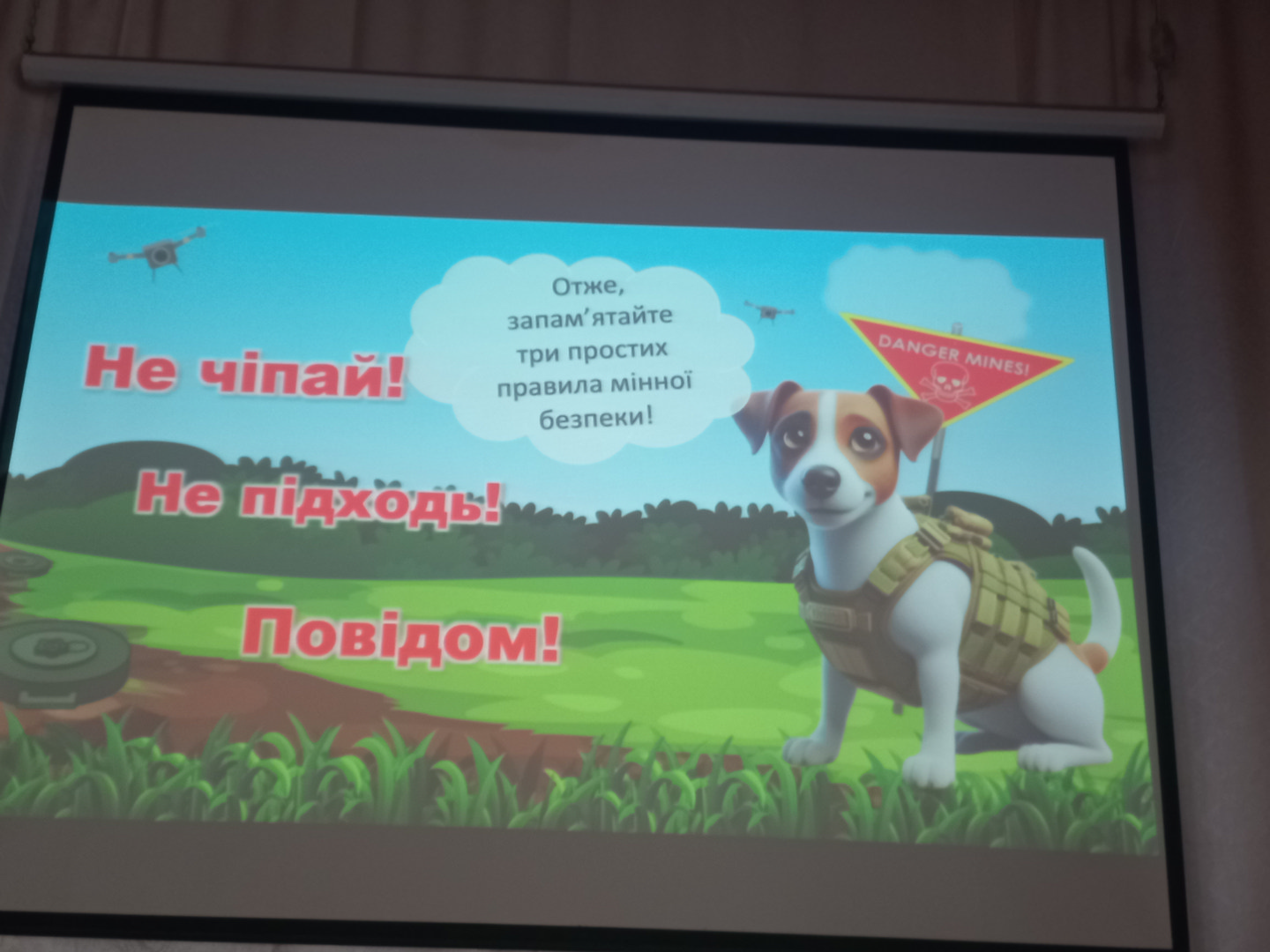 На сьогодні, кожен школяр має знати як діяти якщо знайшов вибухонебезпечний предмет. Тож, аби навчити дітей важливих правил, що рятують життя — заступник директора з навчально-виховної роботи Регіщук В.І. провів учням 4-В класу “Урок безпеки”. Під час уроку розповів дітям про вибухонебезпечні предмети, їх вигляд, про небезпеку, яку вони становлять, а також нагадав про те, як діяти та яких правил дотримуватися у разі їх виявлення. Зауважив, що лише фахівець з розмінування може знешкодити міну, а зайві цікавість та недотримання правил поведінки можуть призвести до невиправних наслідків. Тому важливо бути уважними та обережними!