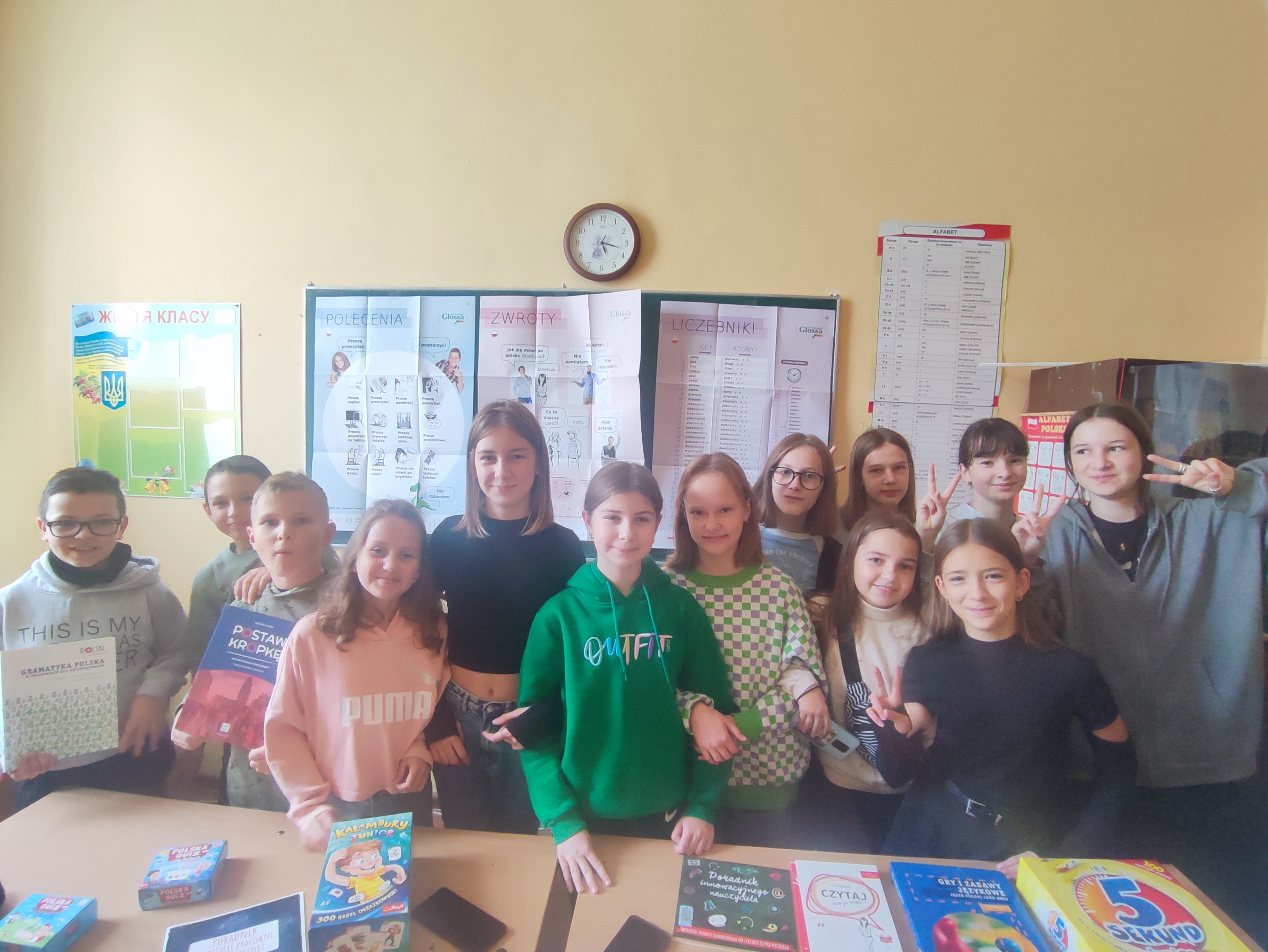 Nasi uczniowie wyrażają serdeczną wdzięczność Fundacjі Wolność i Demokracja, Instytutowi Rozwoju Języka Polskiego oraz Ministerstwu Edukacji i Nauki Polski w ramach projektu "ABC polskiej klasy — przestrzeń w edukacji" za dostarczone podręczniki, materiały dydaktyczne i gry do nauki języka polskiego. To cenne wsparcie nie tylko ułatwi proces nauki języka naszym uczniom, ale także przyczyni się do ich integracji w społeczeństwo polskie.