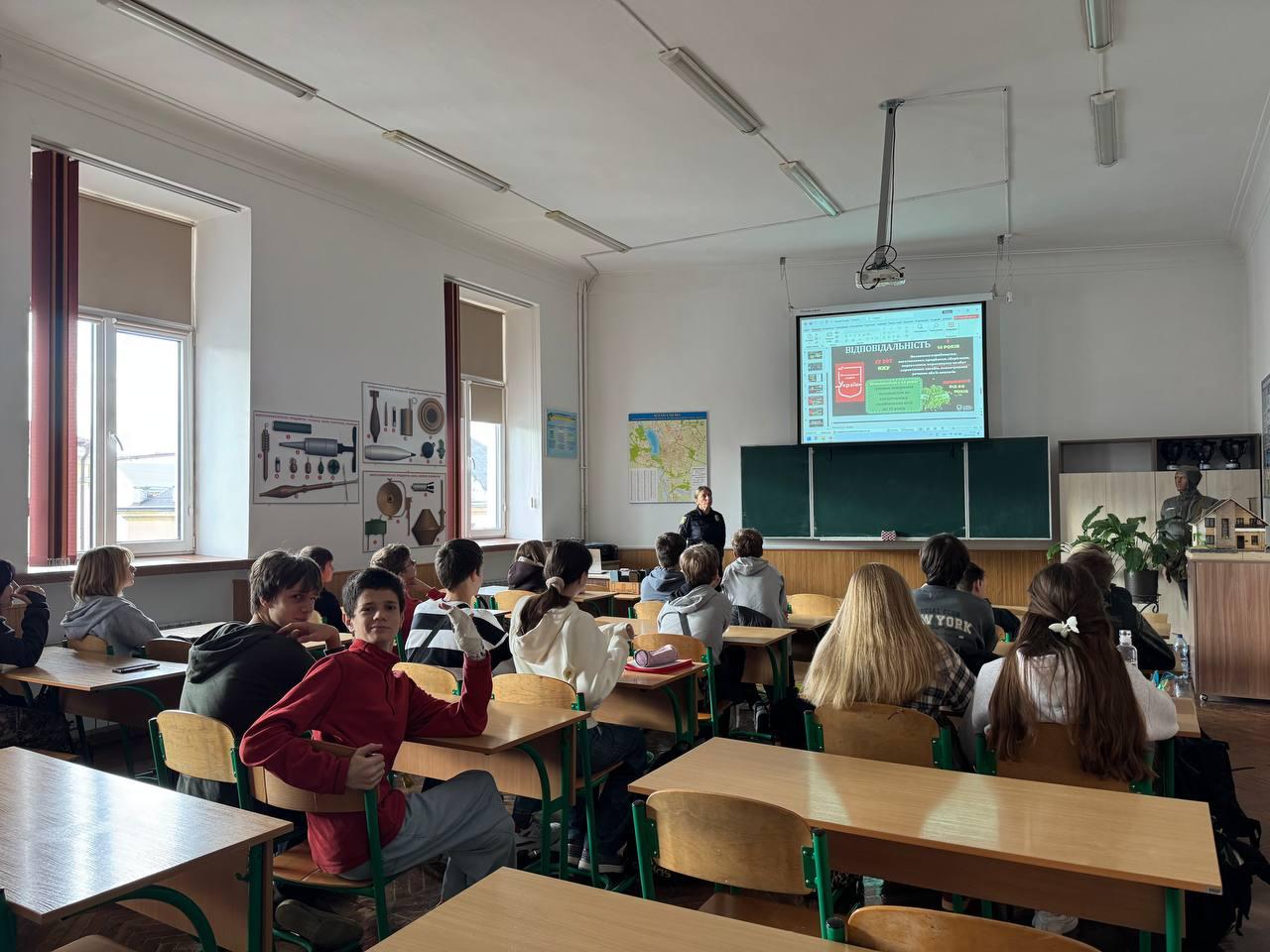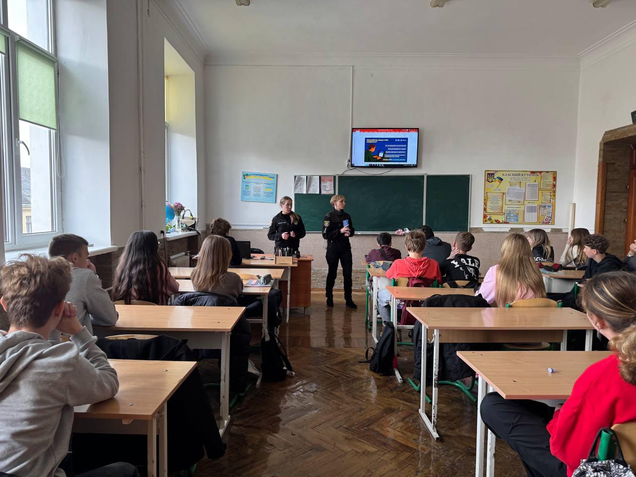 У рамках місячника кібербезпеки у школі відбулися пізнавальні уроки та бесіди за участю шкільного інспектора Служби освітньої безпеки (СОБ), а також представників ювенальної поліції. Під час зустрічей учні дізналися про безпечну поведінку в інтернеті, правила користування соціальними мережами та способи захисту особистої інформації.
