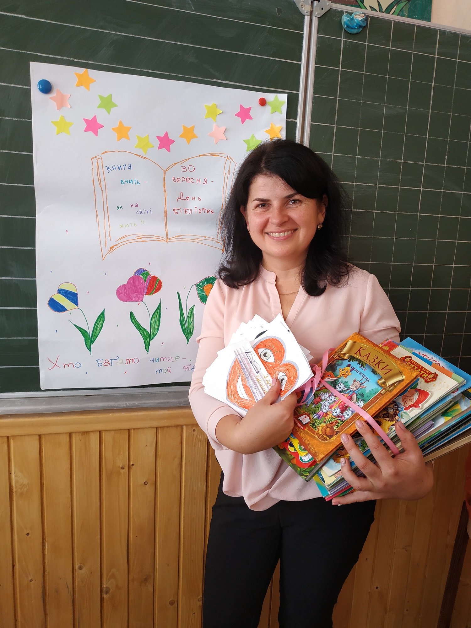 Ви знаєте де можна зустрітись з друзями, дізнатись нове, весело і з користю провести час??? Звичайно, у шкільній бібліотеці! Учні і класний керівник 3-Г класу щиро вітають Оксану Захарівну з професійним святом і долучаються до поповнення фонду нашої книгозбірні!