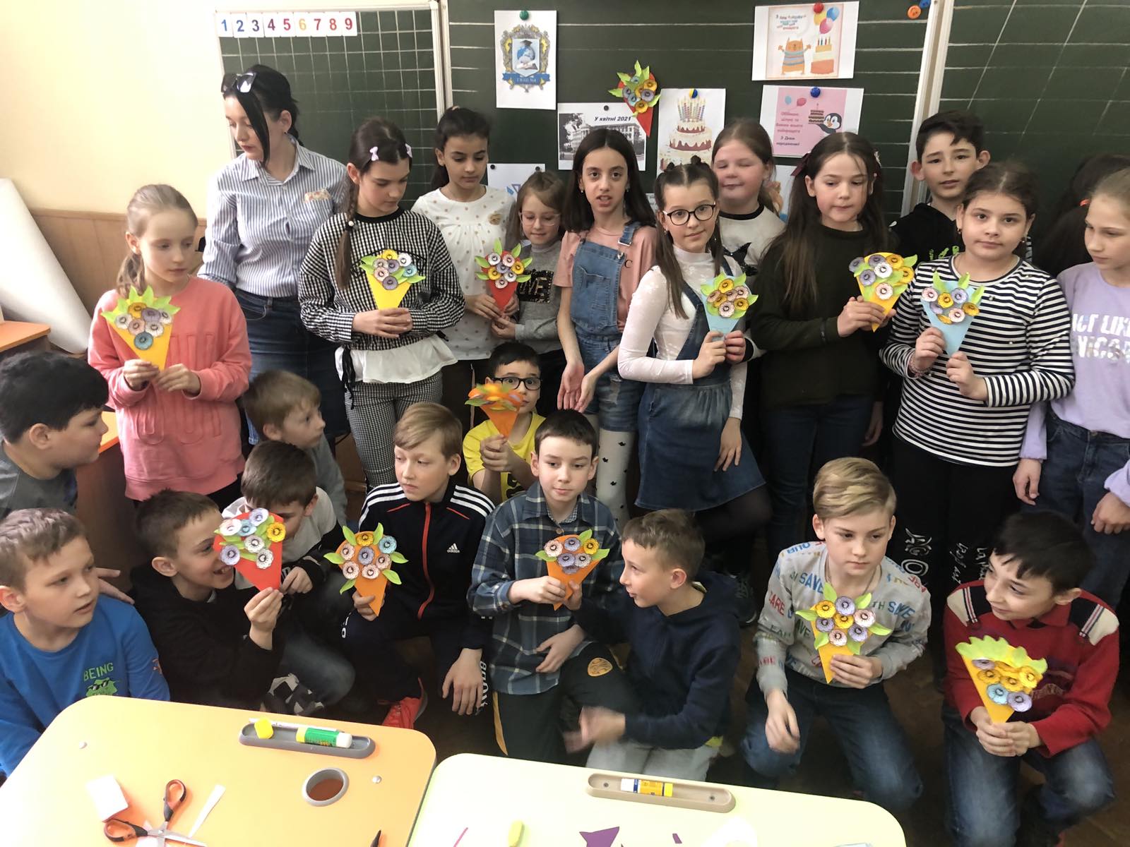 Сьогодні учні 4-Б виготовляли прикраси до Ювілею рідної школи.