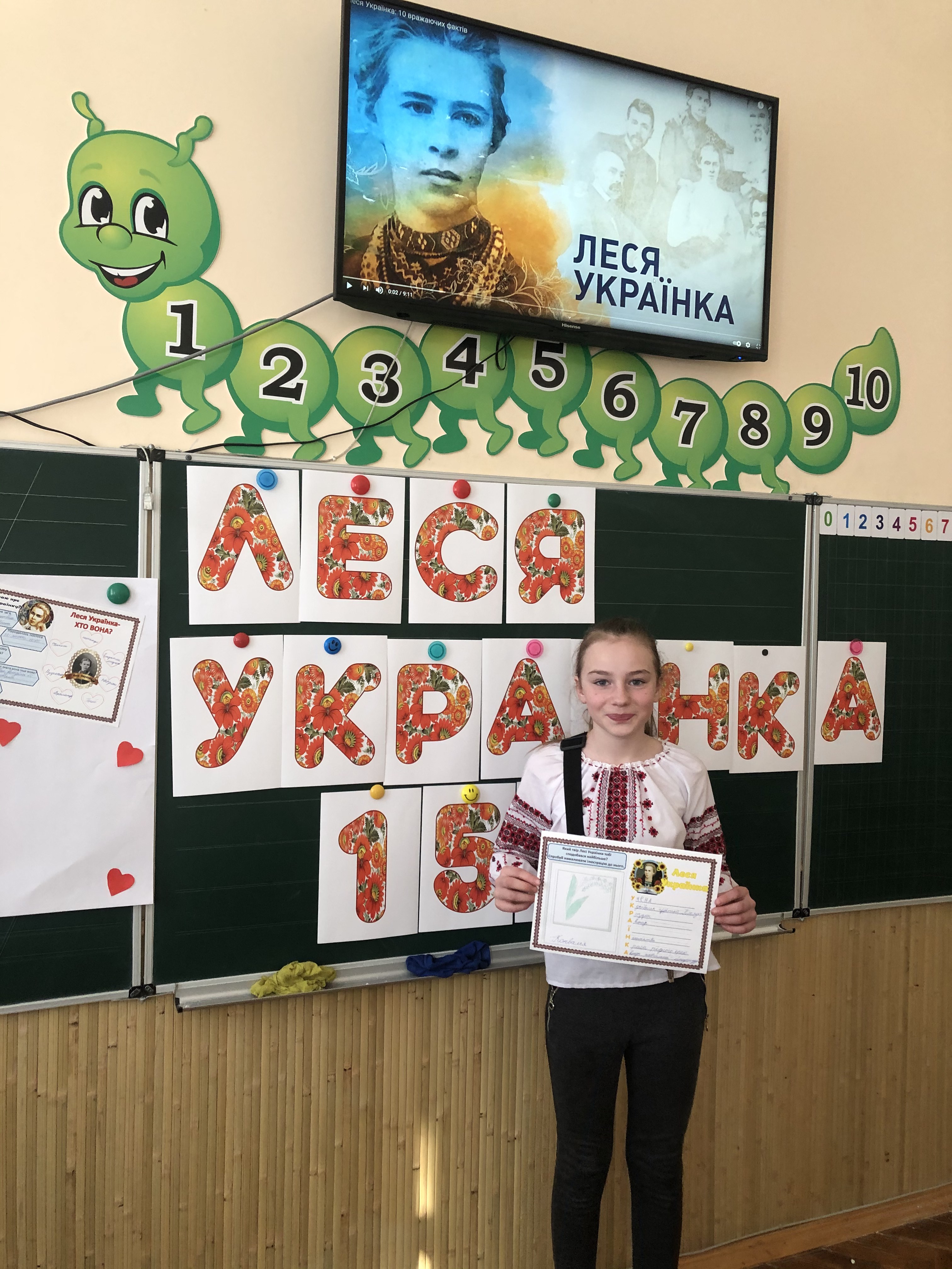 З нагоди 150-річчя від Дня народження видатної української письменниці, учні 1-В класу ознайомилися з цікавими фактами з біографії Лесі Українки, читали казку «Три метелики», створювали ілюстрації.