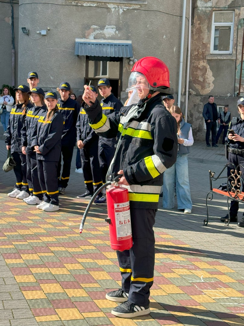 Учні продемонстрували правильні дії під час евакуації, пожежі чи пораненні. Особливу увагу привернула демонстрація засобів індивідуального захисту під час гасіння пожежі.