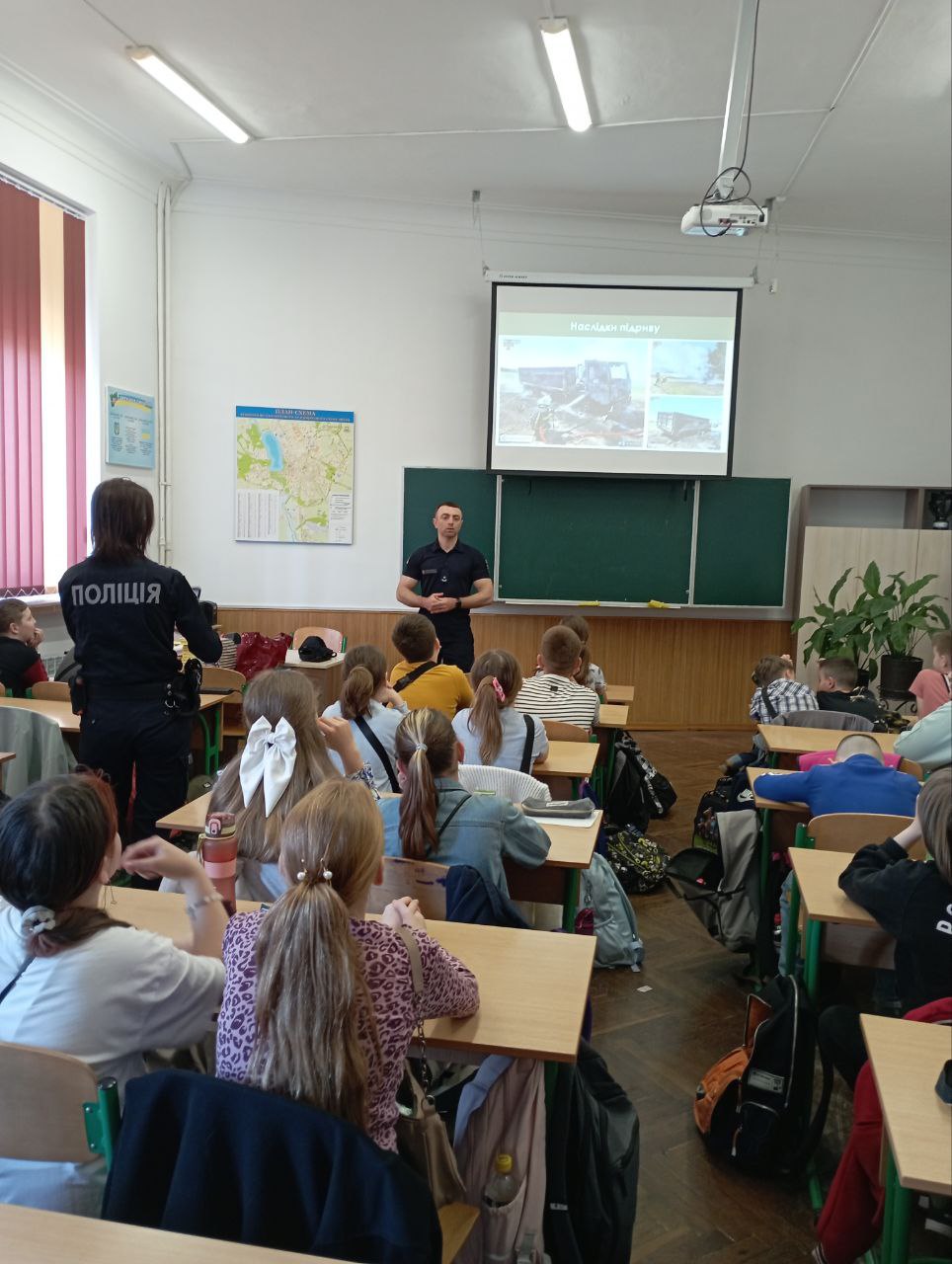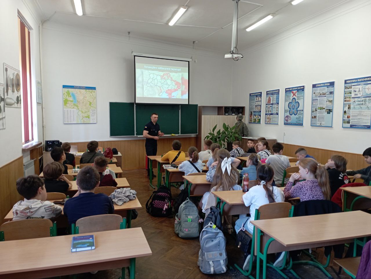 23 квітня у нашій школі відбувся важливий та пізнавальний захід для учнів 5-А та 5-Г класів на тему «Ризики, пов'язані з вибухонебезпечними предметами».