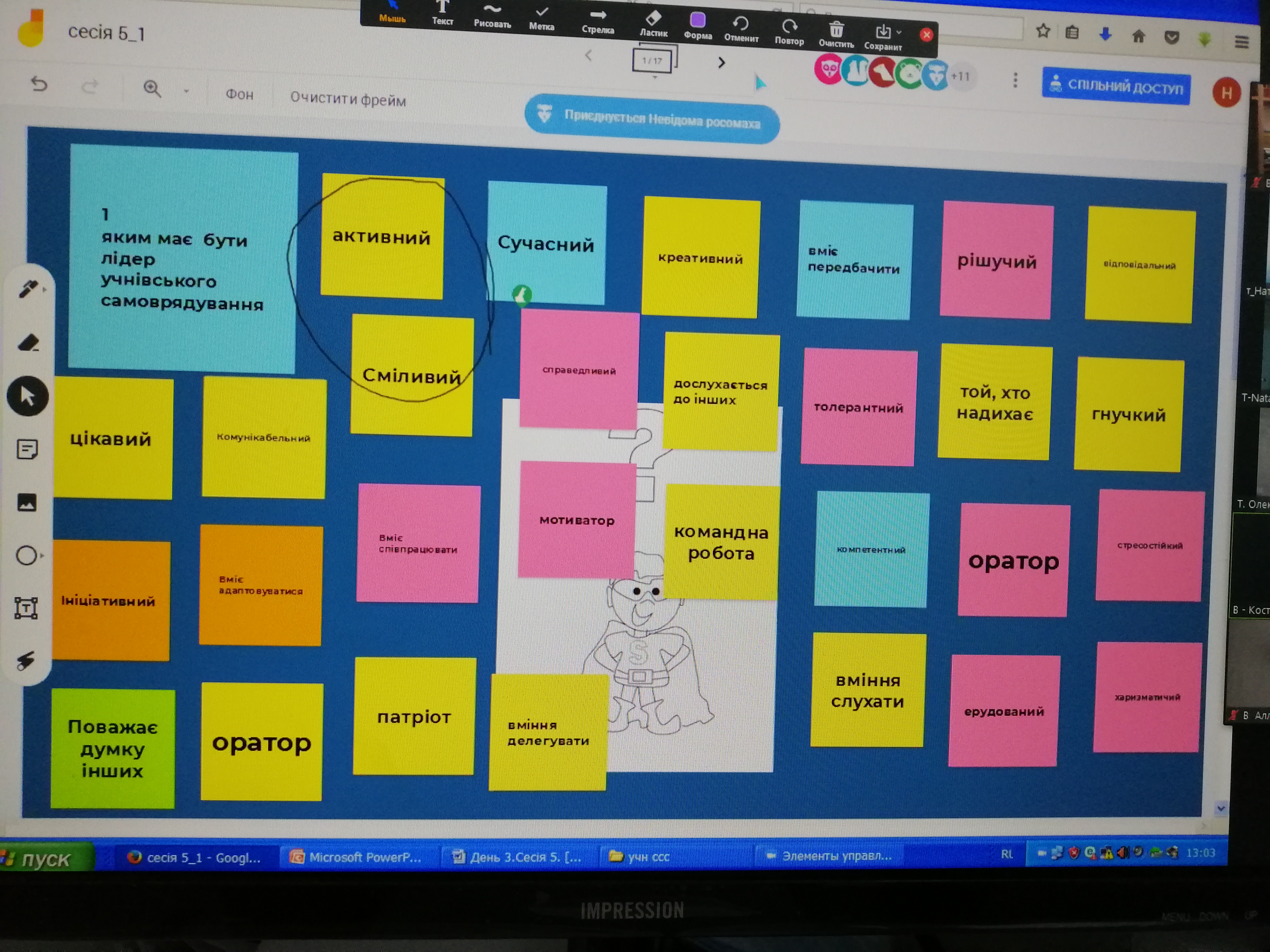 Поступ у напрямку демократичних змін в освіті неможливий без розвитку учнівського самоврядування (УС), без активнішого залучення учнів до впровадження реформ, саме тому в рамках проєкту «Демократична школа» відбувся шестиденний тренінг «Учнівське самоврядування», в якому активну участь взяла і наша школа. З 19 по 30 жовтня тренери проєкту Микола Попадюк, Наталія Маркусь, Наталія Худа та Олександра Козорог створили для учасників калейдоскоп цікавих, творчих та корисних завдань: створення карти учасників тренінгу, обговорення умов ефективної командної роботи та очікувань від тренінгів, вивчення моделей, переваг, символів та ознак УС, опрацювання карток"Демократія для всіх"; визначення ролі УС на "Драбині Харта». Важливим елементом роботи стало вивчення інструментів для взаємодії та забезпечення діяльності УС в умовах пандемії. Для ефективного засвоєння матеріалу були виконані самооцінка роботи УС, SWOT – аналіз та планування подальших дій. Уже звичною приємною ознакою тренінгів проєкту є позитивна дружня атмосфера і цей тренінг не став виключенням!