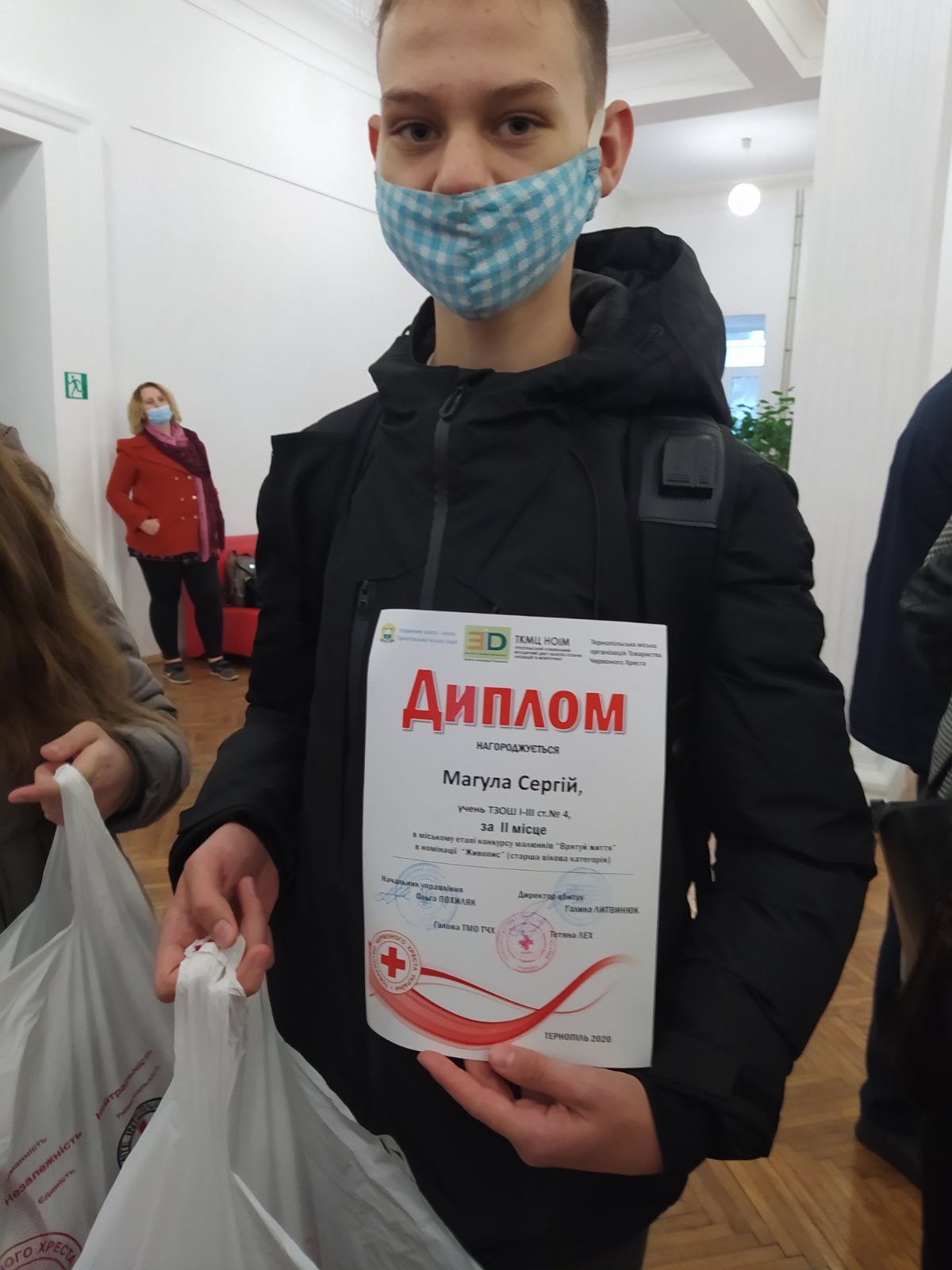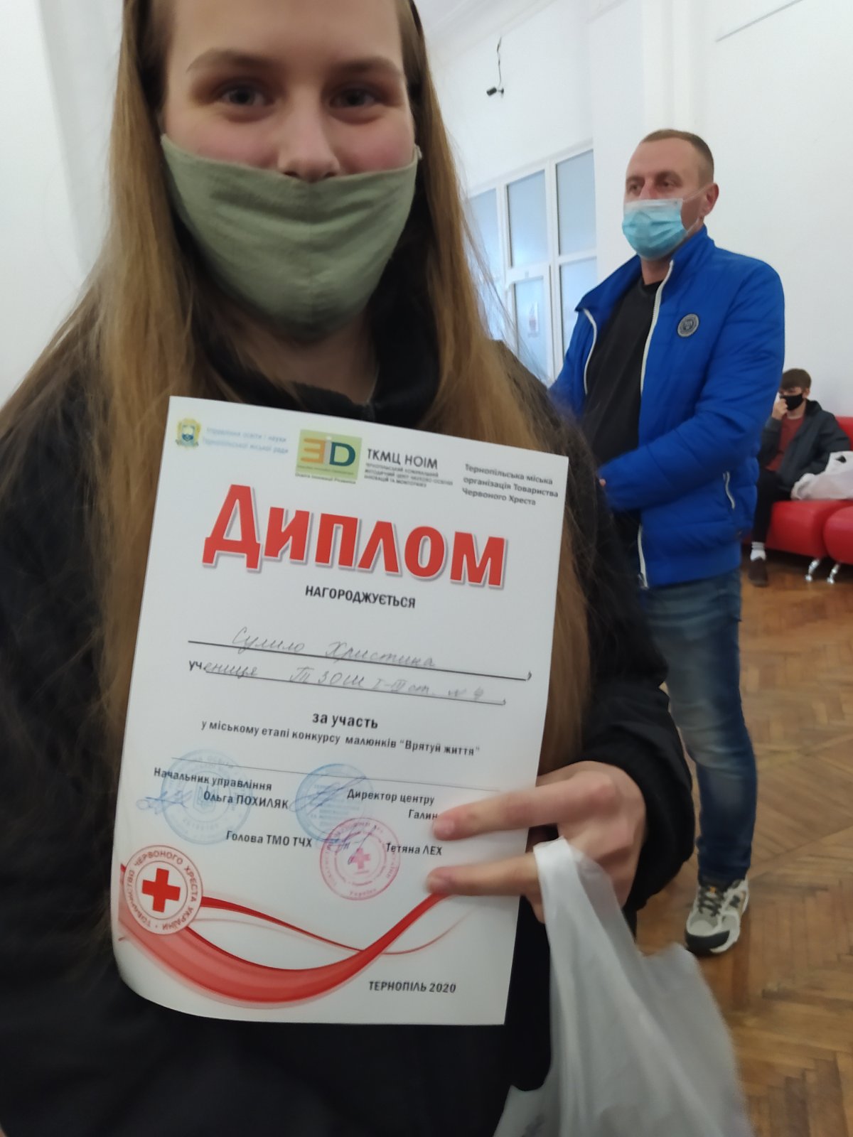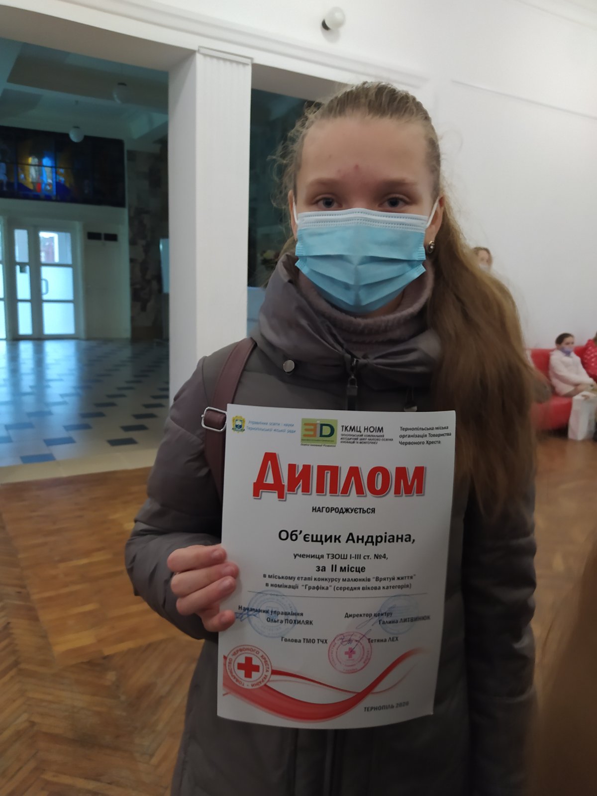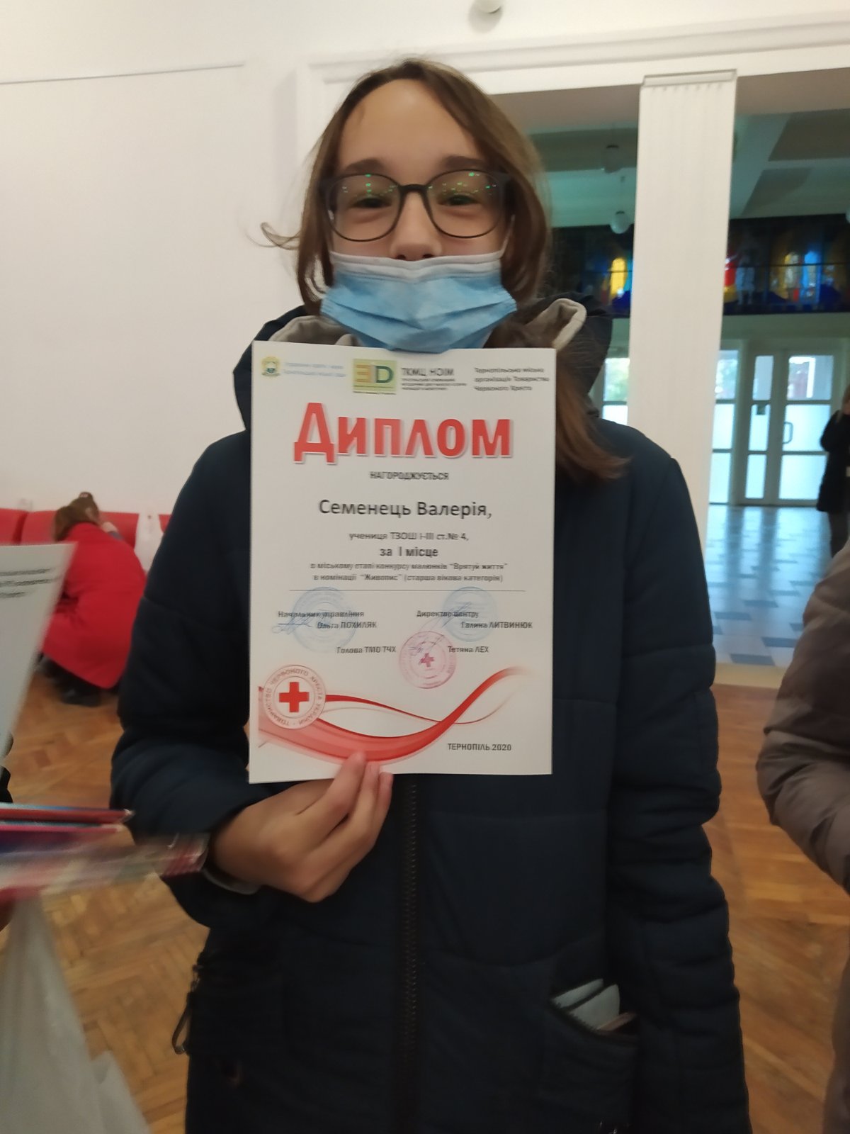 Чи можна вважати гідним результат, коли троє з чотирьох учасників конкурсу стають призерами? Мабуть, так! Сьогодні, 03 листопада в українському домі «Перемога» відбулося нагородження переможців в міському етапі конкурсу малюнків «Врятуй життя» від організації «Червоний хрест». У номінації «Графіка» в середній віковій категорії ІІ місце посіла Андріана Об’єщик (7-В клас), ІІ місце у номінації «Живопис» у старшій віковій категорії здобув Сергій Магула (8-Б клас), та особливі вітання летять до переможниці в номінації «Живопис» у старшій віковій категорії Валерії Семенець, учениці 9-В класу. Вітаємо усіх художників та Христину Сулило, учасницю конкурсу з 9-А класу, з визнанням їх творчого потенціалу! Ми пишаємося вами та радіємо вашим успіхам!