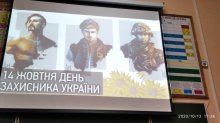 У 7-Б класі відбувся захід з нагоди Дня захисника України, свята Покрови Пресвятоі Богородиці та Дня украінського козацтва. Під час цього свята учні познайомились з історією Дня захисника Украіни та пригадали традиціі славного украінського козацтва. Учні 7-Б класу переглянули презентацію, після неі відбулася вікторина, конкурси, де діти проявили ерудицію, спритність, кмітливість. Наприкінці свята співали караоке. Класний керівник 7-Б класу побажала юним захисникам наснаги, терпіння, сили волі і розуму, а найголовніше - бути справжніми патріотами своєі Батьківщини.
