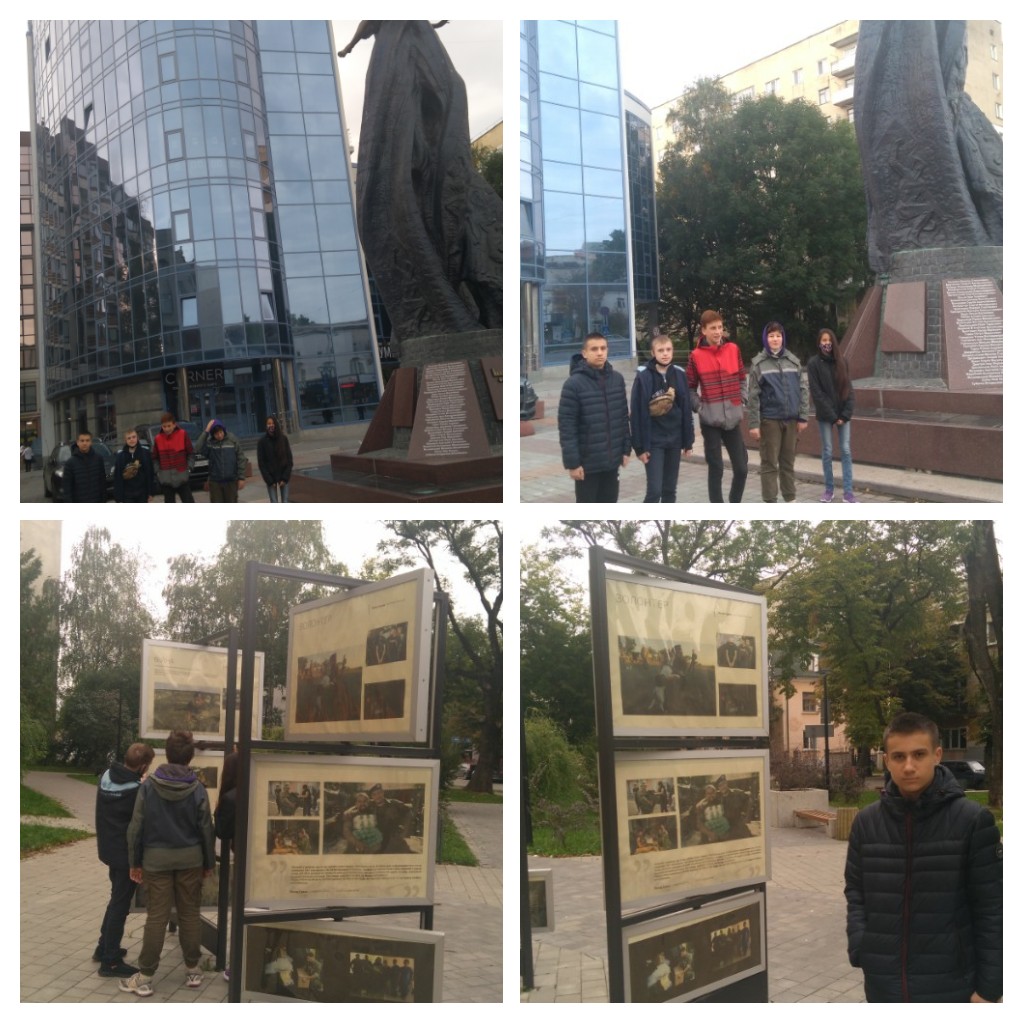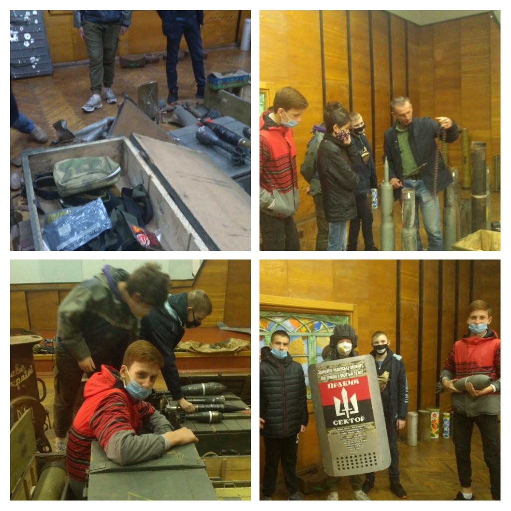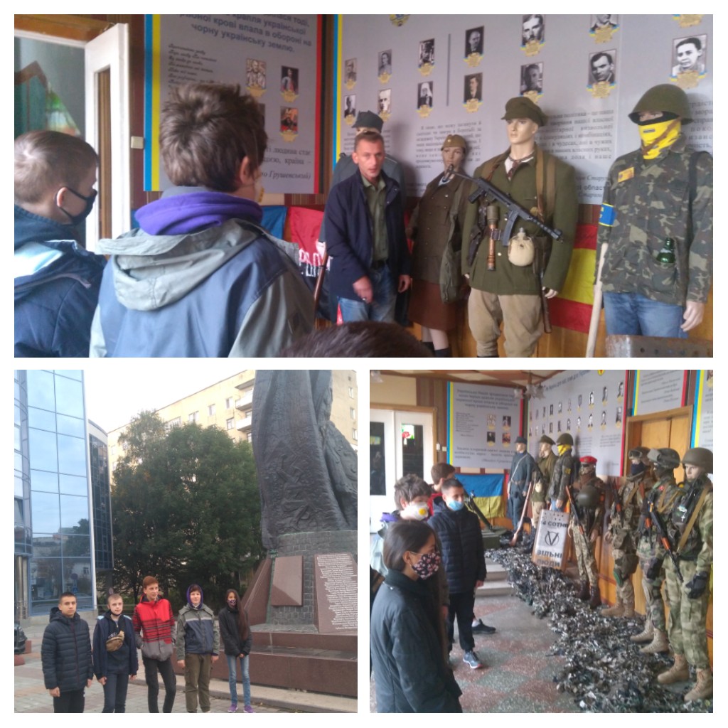 Саме з метою зацікавлення учнів нашої школи історією боротьби українців був приурочений похід учнів 7А класу у Музей національно-визвольної боротьби Тернопільщини. У нещодавно відкритому музеї по вул Медовій зібрали всю історію боротьби України за незалежність від козацької доби і до війни на сході України. Тут поруч з формою бійців УПА можна побачити сучасний одяг та озброєння українських військових , що брали участь у російсько-українській війні. Живий свідок подій на майдані і сході, учасник бойових дій поблизу селища Піски, а нині гід музею Ігор Войцехівський, поділився незабутніми спогадами про перебування на передовій, розказав про особливості професії алтилериста, переказав історії кожного експонату та пояснив своїм допитливим слухачам що активний наступ військ РФ на території України вдалося зупинити завдяки спільним зусиллям українців, які стали на захист держави у лавах Збройних Сил України, Національної гвардії України, добровольчих формувань та масового волонтерського руху.